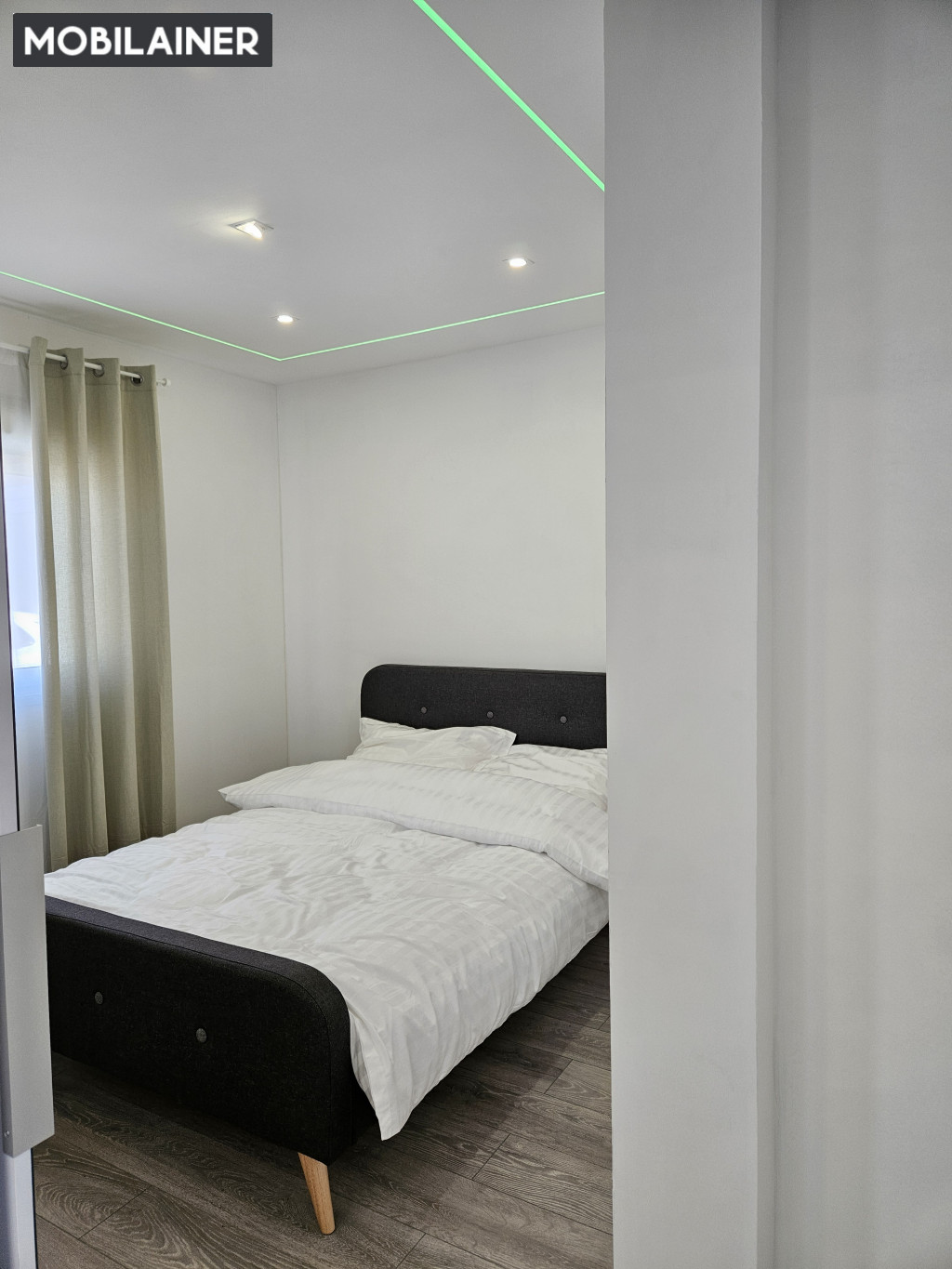 Lakótér: laminált parketta/ vízálló vinyl padlóburkolat szegélyléccel,